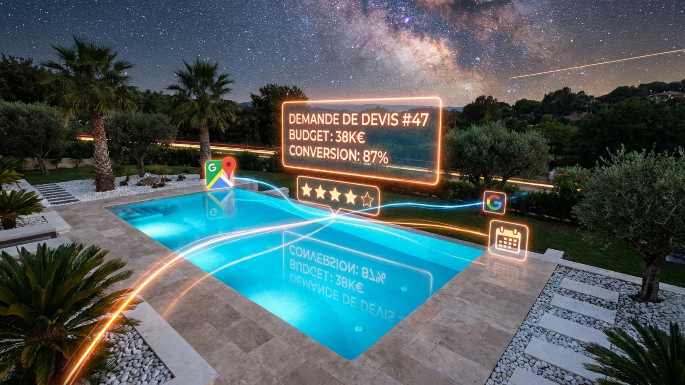 « Pisciniste Toulouse », « construction piscine Lyon », « rénovation piscine Aix-en-Provence ». Ces recherches représentent 40% du trafic pisciniste sur Google. Et dans 90% des cas, les gens cliquent sur les 3 premiers profils Google Business qui s’affichent avec avis, photos, et bouton d’appel direct.